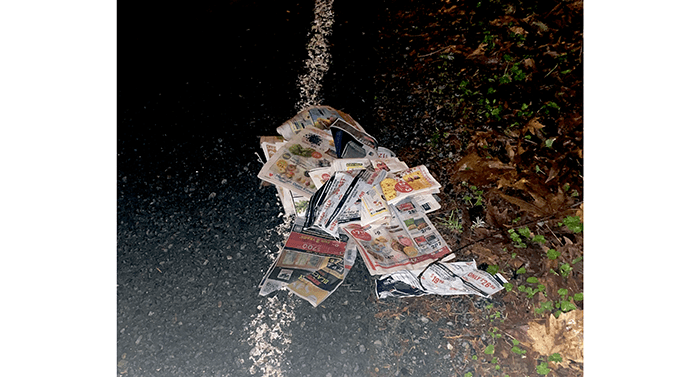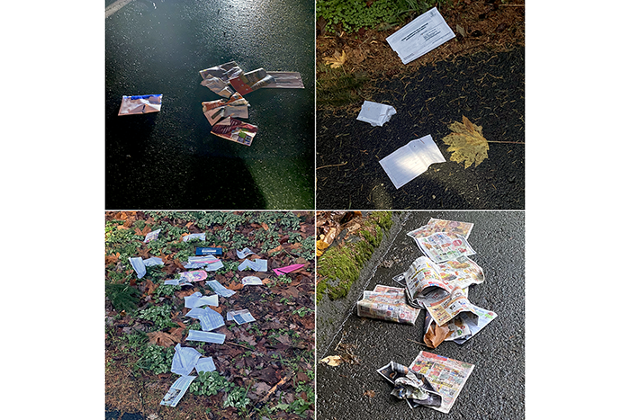 On our way down the hill, we came across more piles of the stolen mail, mostly shopping ads.