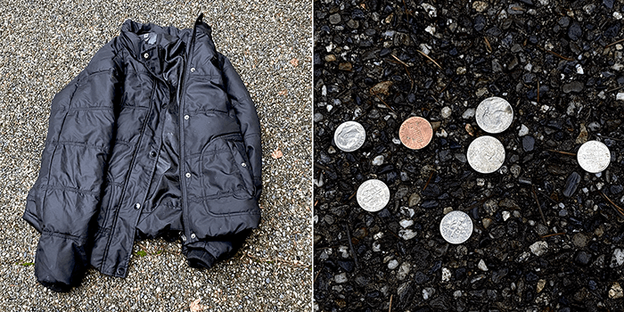 In the pockets were several pebbles and fifty-one cents in change. There was nothing else to identify the owner, so we can count this as found money. The jacket was supposed to be waterproof but was waterlogged. Go figure. It was heavy, but we hauled it home. It was fifty-one cents, after all.