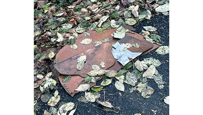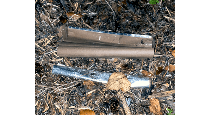 A partial roll of tin foil. This is a sign of drug usage when the users use the foil to cook their product. We have several partially used rolls of foil we have picked up. We tossed this one into recycle.