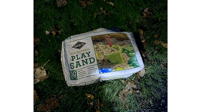 During this week, we made several trips into Woodinville driving under the freeway interchange and saw several pieces of trash that probably came off vehicles on the freeway above. One of them was a 50-pound sandbag.