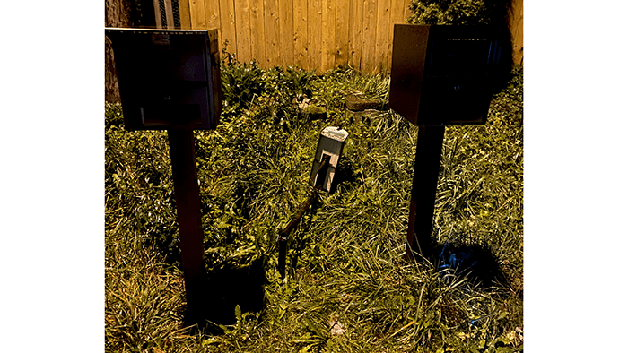Over the years of walking, we have seen this mailbox down over three times. The owner keeps standing it up and wrapping more tape around the broken pipe. Okay, tape is cheaper than a new mailbox, but still.