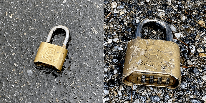 Near the end of our walk, we found a Brinks combination lock.