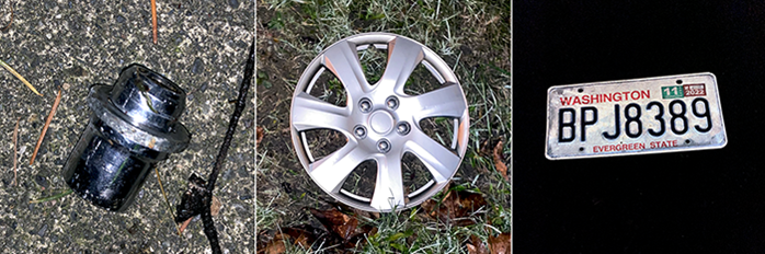A lug nut, which always scares us. We don’t have a photo, but on an errand, we saw a Prius on the side of the freeway with a missing wheel and its disc brake on the pavement. It happens. We picked up a wheel cover in good condition. We carried it home and will send it to Goodwill. Finally, on the way up Norway Hill, we found an unscathed license plate by the side of the road. We placed it on a nearby fire hydrant so perhaps the owner might see it. We’ll check on our next trip.
