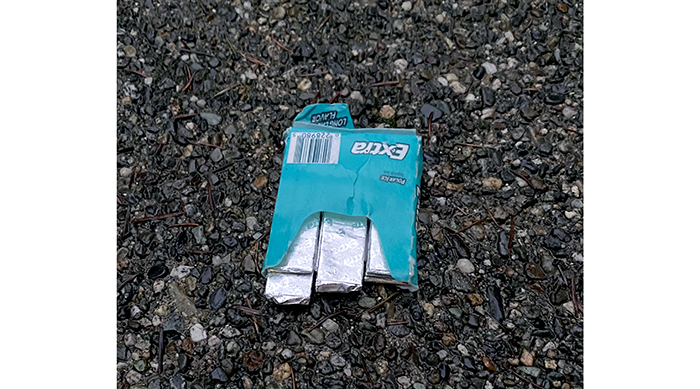 Eight sticks of unopened gum. We didn’t take the bait and chew some. Yes, we can walk and chew gum at the same time. We’re just not giving them the satisfaction to see us try. Really. Besides, we may need some practice.