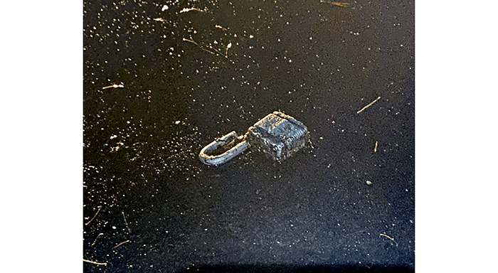 The security kind, not the hair kind. This one had been badly beat up by the traffic and got recycled. No key, anyway.