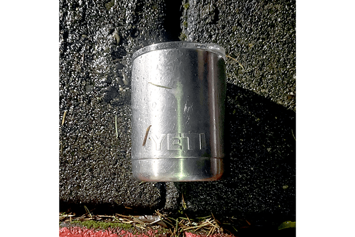 The weather was cool in the upper thirties with light rain that gradually stopped. We found a very nice Yeti cup.
