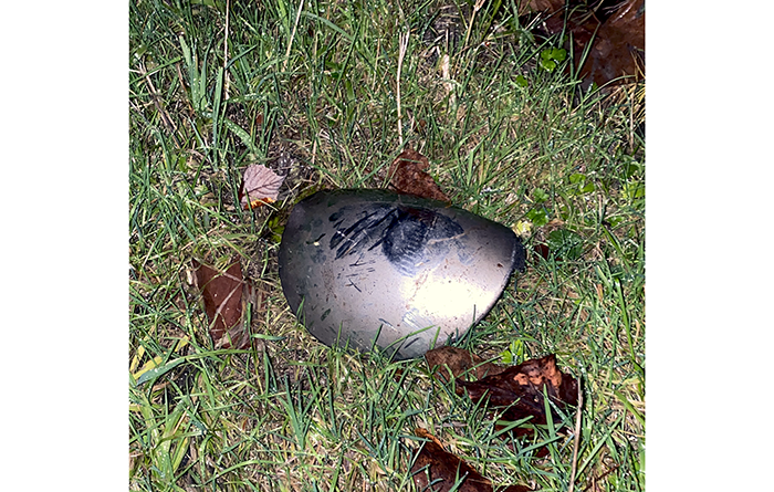 A vehicle on the freeway lost a hubcap and sailed it over the guard rail onto Riverside Drive. Too bad we weren’t there when it happened. We could report a UFO, the Seattle Times would surely cover it. It was in rough condition and ended up in a nearby recycle bin.