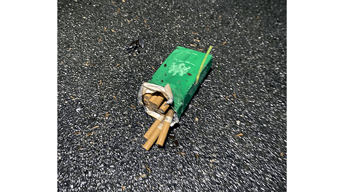 We found an almost-full pack of cigarettes.