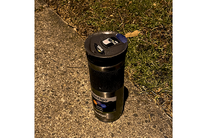 For the second time this week, a bottle of yellow liquid. We wouldn’t touch it with a ten-foot pole. But we did with our three-foot picker.