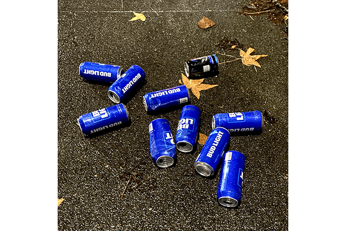 Ten, count them, ten beer cans. Could be the buses ran late all week? Who knows?
