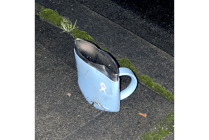 This is a Hydro Flask travel cup to design to flatten to fit in your luggage. We found it was very difficult to unflatten. Not recommended by TrashWalking.