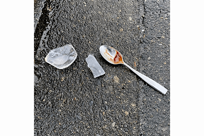 And farther up someone finished a bowl of ice cream and littered the bowl and spoon.