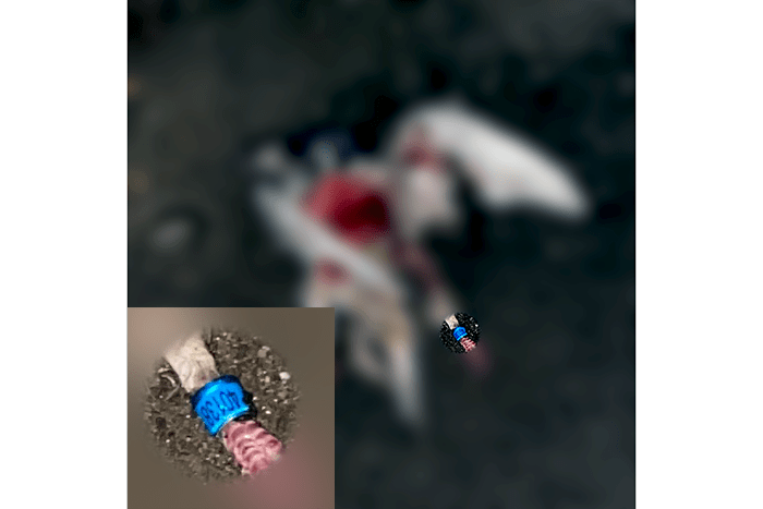 We found a dead bird under the freeway. We find a lot of dead birds, but this one was tagged.