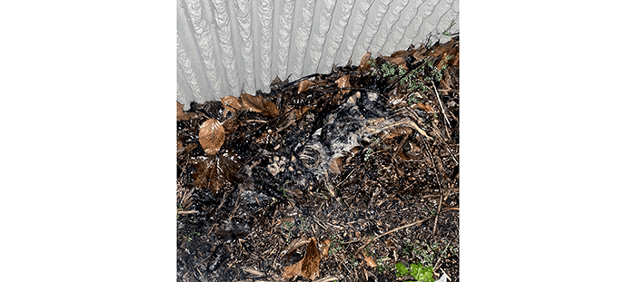 We just walked by this intersection. Checking the video, the animal was not there when we were heading toward Safeway. So, the critter met its demise during the previous forty minutes. Too bad. We did give it a proper burial in the bushes.