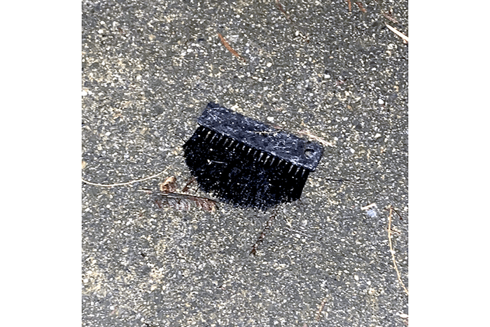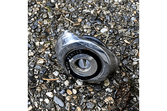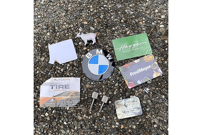 A BMW emblem. We’ve found several of these. BMWs are expensive vehicles. Wouldn’t you think they could afford better glue?