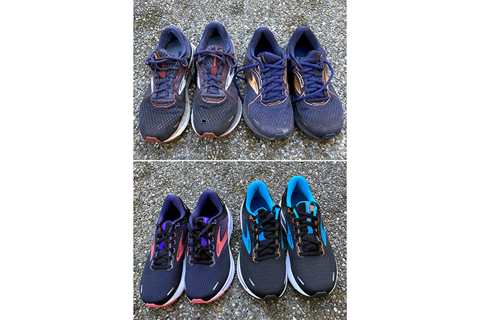 Our old shoes have 748 miles on them according to Garmin. They will be recycled at the Brooks Store. The new pairs will be our thirteenth pair since we started walking nearly seven years ago. By the way, some folks can’t tell the difference between the old and new shoes. Hint: The old shoes are on the top.