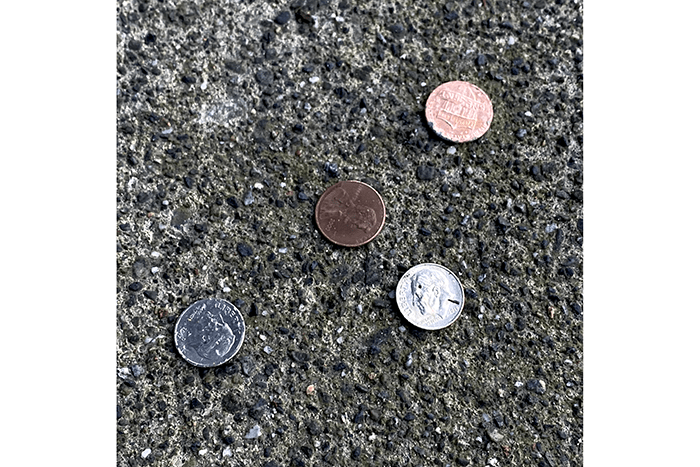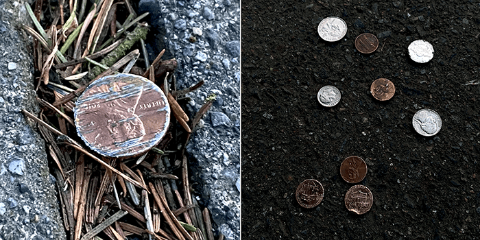 And were rewarded with twenty-two cents. So far this week, we found ninety-eight cents at this location. We must have missed two pennies.