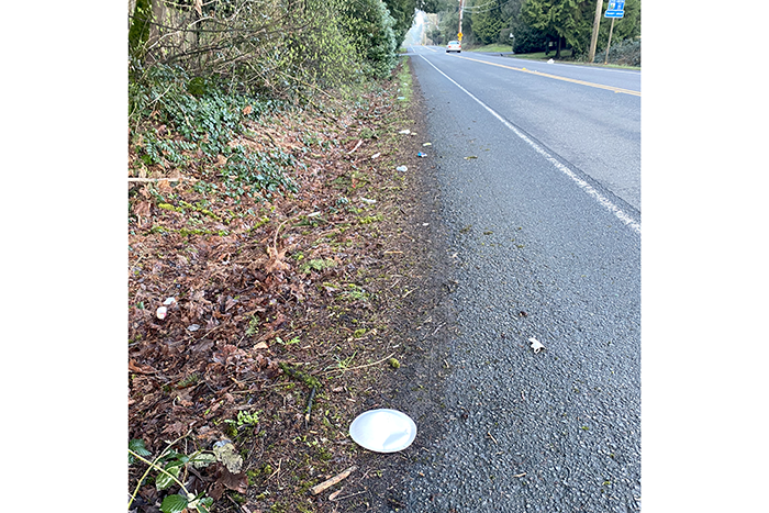 As we turned onto NE 145th St, we found someone had dropped a large amount of trash that covered both sides of the street for about a block. It took about fifteen minutes to clean up.