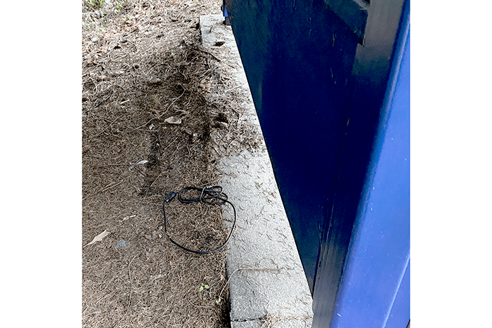 Today, we saw they had removed the TV but left the power cord. Next time we report something like this we will be more specific: “Plasma TV and power cord.”