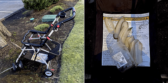 In the seat was an opened jar of pickles, but what kind of animal eats pickles? Perhaps that’s why they dumped their cart. No animal.