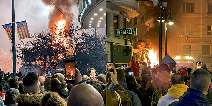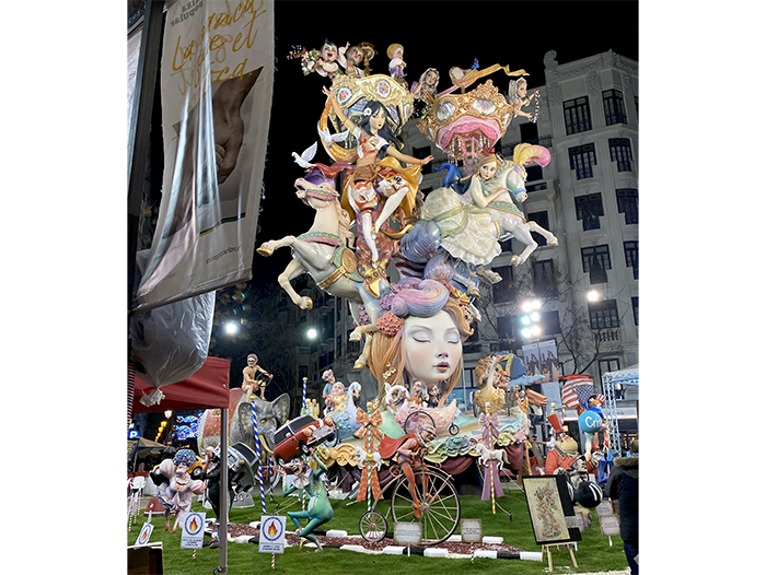 Each of the Fallas has a theme, mostly political, but all interesting. During the days leading up to the culmination on March 19th, there are daily fireworks at 2:00 in the afternoon designed purely for noise. Here is a link to one we attended. The video counts down, so the fireworks start at 11:40 with the finale starting at 6:45 and the ending at 5:18. At the peak, the noise is breathtaking.
