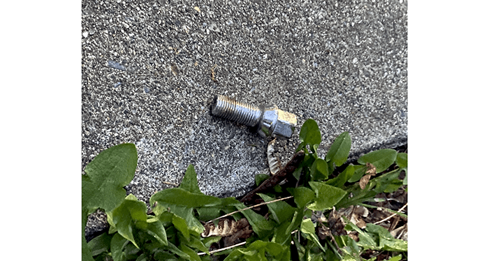 We found about thirty of the discs on the road but only a few of the screws. The screws probably hitched rides in passing car tires.