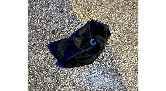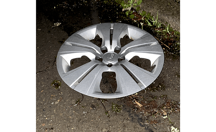 A Volvo emblem that probably wasn’t stolen but fell off.