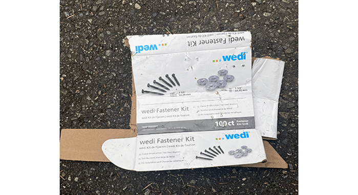 On Simonds Road, a dropped box of Wedi Fasteners.