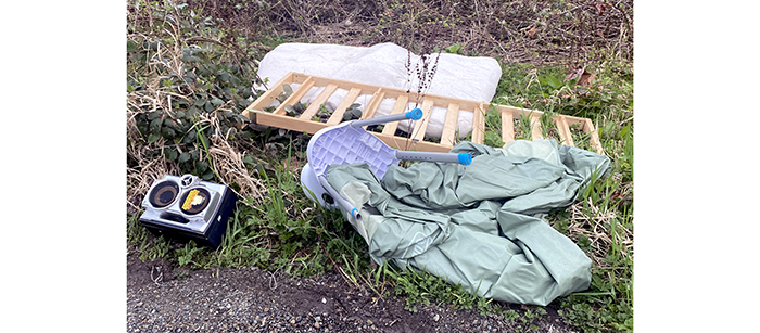 In front of the apartments on Woodinville Drive, someone dumped unwanted items.