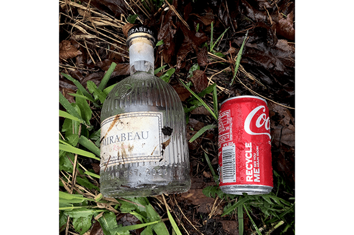 Near a bus stop on Brickyard Road, we found a partially empty can.