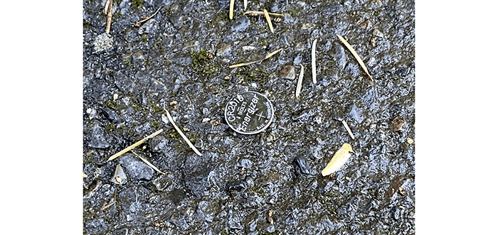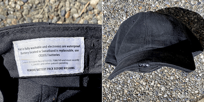 “REMOVE BATTERY PACK BEFORE WASHING?” We found that there was a wire plug in the sweatband, no battery pack, though, and three LEDs in the brim of the hat. After some investigation, these are available on Amazon and other places, and sound like a good idea if you need light in the dark, like us. Right now, we have a chest light, a back light and a flashlight. These do the trick for us. However, a hat brim light might help at the times where we need to hold the flashlight in our mouth. Okay, that does not happen often, plus it uses CR2032, non-rechargeable batteries. If we wore this hat, we would use more CR2032 batteries than money we find. Speaking of which…