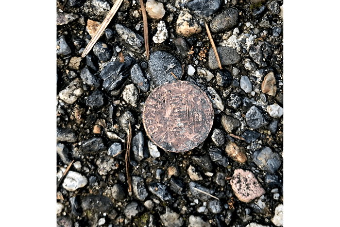 The person taking the photo missed one of the pennies, but there were two, or so she says.