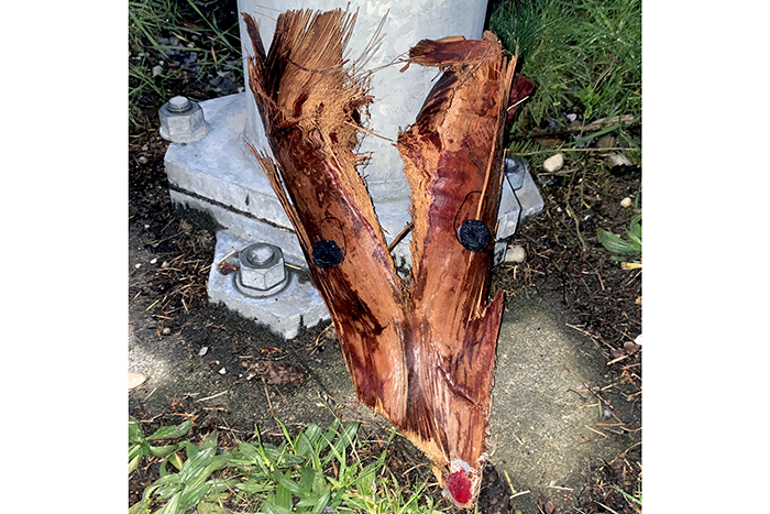 A car lost a wheel and was abandoned by the side of the road. We were about a mile from home and would have offered to bring our jar of lug nuts down to find matches, but nobody was around. We also looked for the lug nut that “broke the camel’s back” but were not able to find it. Too bad, it would have made a good addition to our collection.