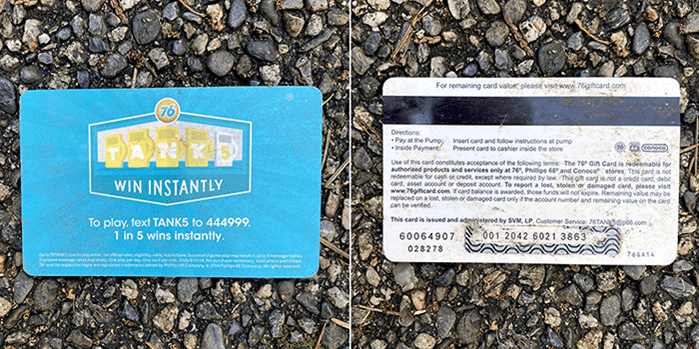But wait, a gift card from a 76 Gas Station game called Tank5.
