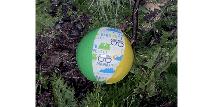 We finally got it into a sheltered place to take a picture. It was a graduation celebratory ball, but for 2021. Perhaps the person failed to actually graduate and finally made it this year. Or not. Either way, we discussed whether to pop it or let the air out of it to carry home. In the end, we tossed over an unsuspecting fence to let someone else take care of. What are the odds we will find it at the Tolt Pipeline tomorrow?