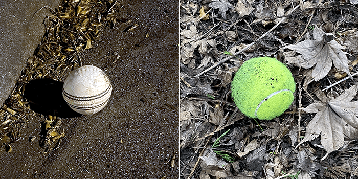 We were on a roll this week, having found three balls. Plus, today, we found four more balls, another baseball and three wiffle balls. We tossed them back over a nearby fence before thinking about taking a photo of them. So, this week, we found seven balls. Really.