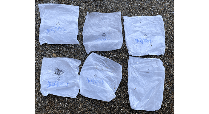 They may have been bags from a Chinese restaurant. We don’t know what they said, but the Google Translate picked out the last few symbols as the word ‘Bad’. Not good. Literally.