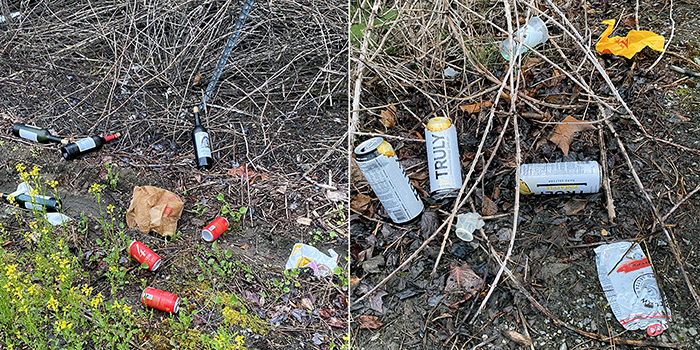 As seems to be the norm, we found a bunch of 14-Hands wine cans and bottles along with McDonalds bags.