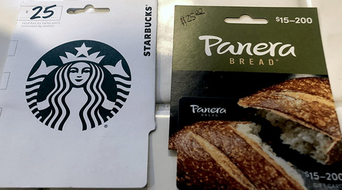A Starbucks card and a Panera card. This was a very welcome surprise and we really appreciate these gestures of thanks.