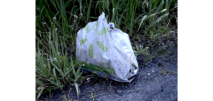 Going down the hill toward Riverside Drive, we spotted a bag that looked like it could be the McLitterers.