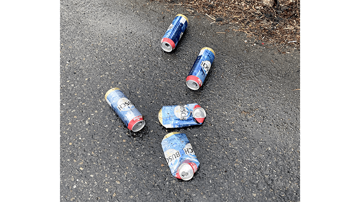 On the freeway offramp, we found more Busch 25-ounce beer cans, all with the pop-tabs removed.