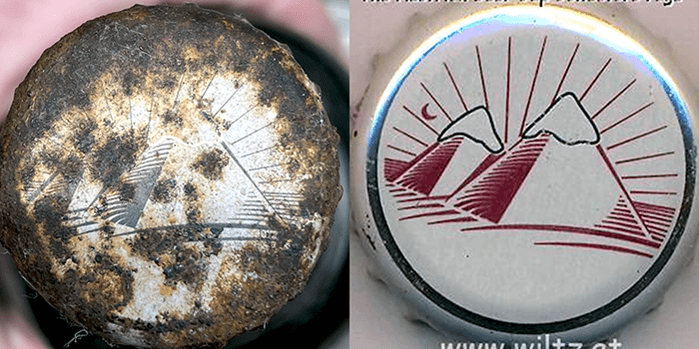 Backtracking to last week, as you may recall we found an old unopened mystery bottle buried in the ground. We finally rinsed it off and were able to see some markings on the cap.