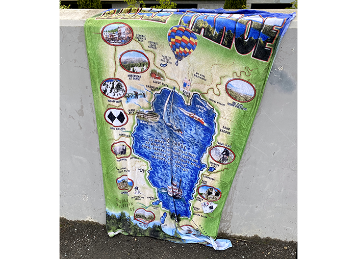It is a tourist map of Lake Tahoe. But Lake Tahoe, like a lot of California is shrinking. They obviously needed a new towel.
