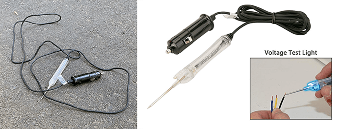This looked interesting. It plugs into a cigarette lighter and has a needle on it. A mobile tattoo kit? But we were disappointed to find that it was part of a car stereo installation kit. A boring voltage detector. We’d rather stick to the tattoo needle story.