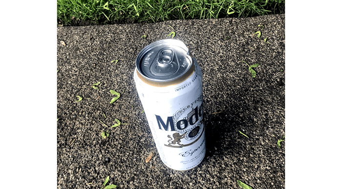 We found an almost full can of beer.