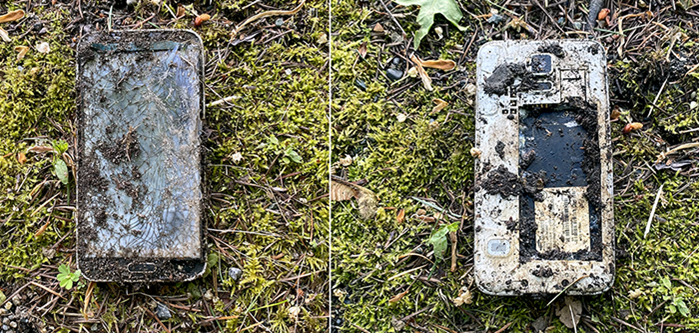 It turned out to be an old cell phone, a Samsung Galaxy S5 from 2014. We didn’t even try to revive it. This makes the seventeenth cell phone we’ve found.