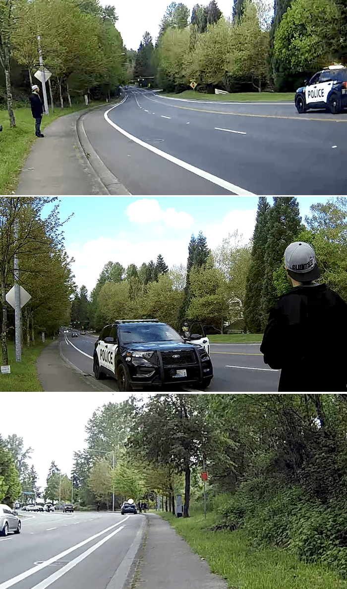 Near the end of our walk, we were approaching a guy on the sidewalk when a Bothell police officer stopped and had a conversation with the guy. The policeman continued on his way then returned a few minutes later just as we were passing the guy.