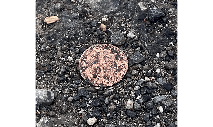 Today was a nice walk, relatively cool with no rain. We removed another small bird and a medium-sized raccoon from the road. But, on the brighter side, assuming you believe that roadkill is not, we found a penny.