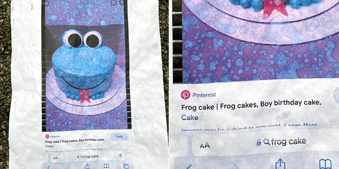 It is labelled “Frog cakes, Boy birthday cake.” Janet was incensed. A Boy cake because it is blue? It seems very un-PC.