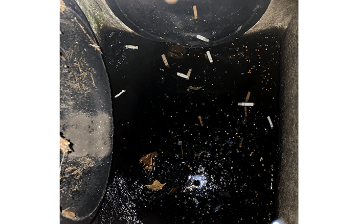 In this snapshot, we count twelve cigarette butts flowing into our waterways to the Puget Sound. There is no filtering of this water, so it all makes it to our lakes and the ocean. Between us, along this stretch, we probably pick up fifty to one-hundred cigarette buts each week, and we are not making a dent in it. Deep breaths. We thought we had gotten over our cigarette butt phobia, but the storm drain brought back our memories.